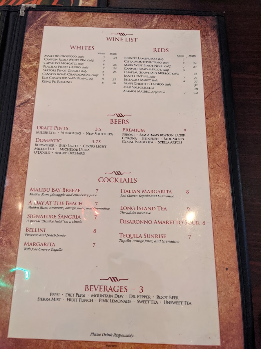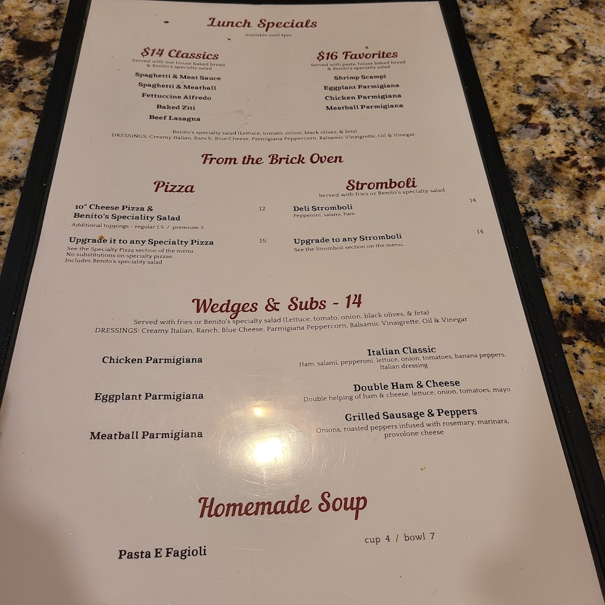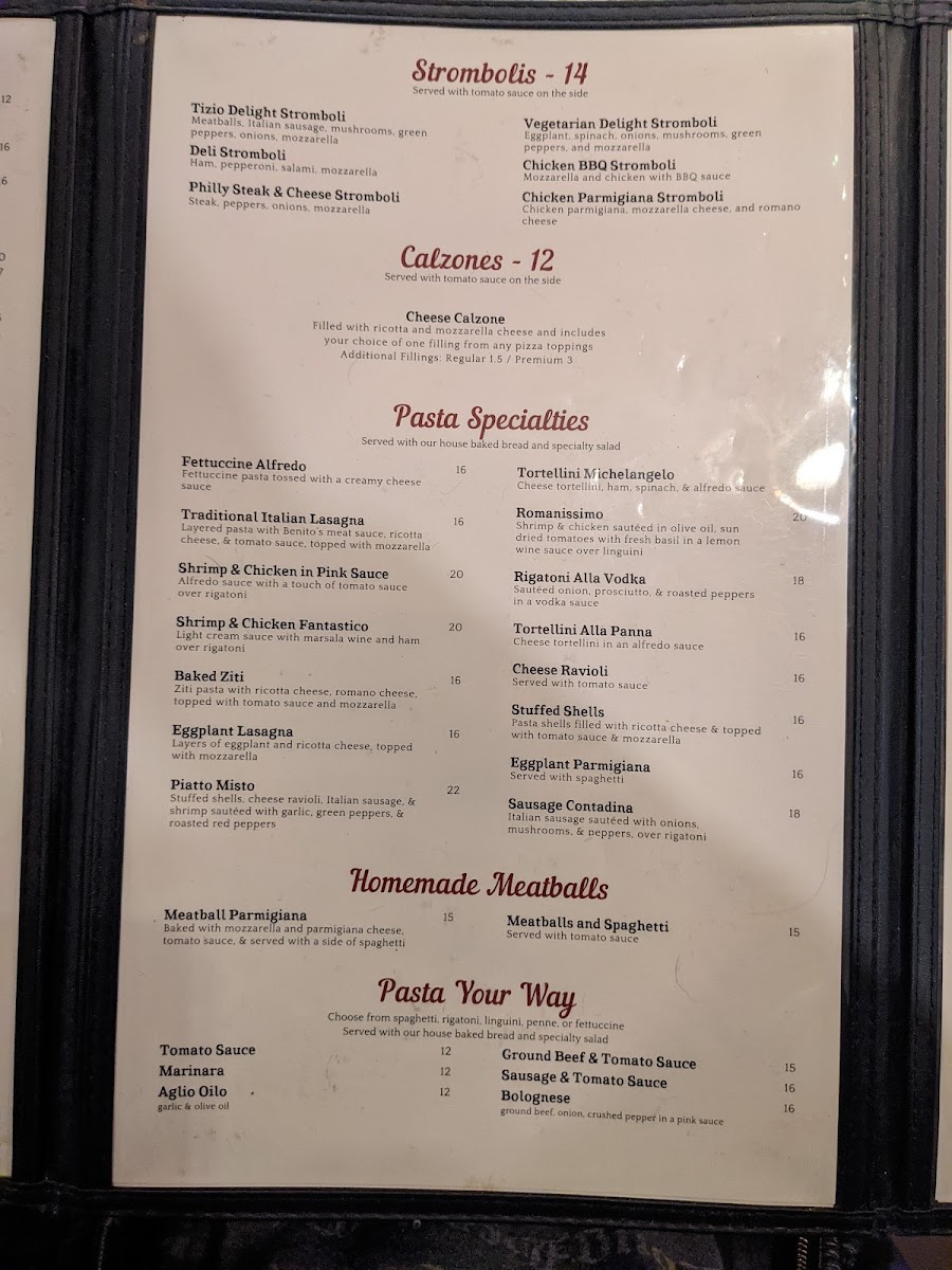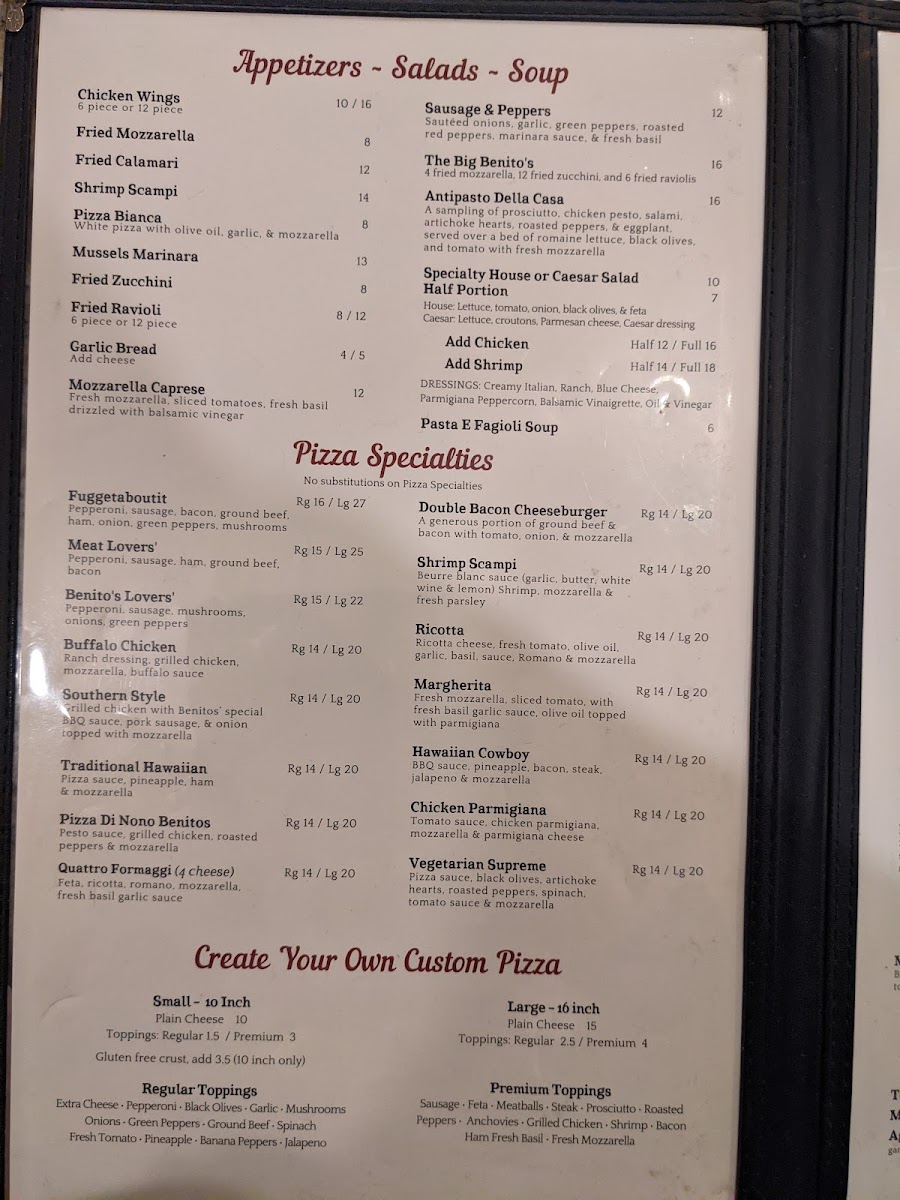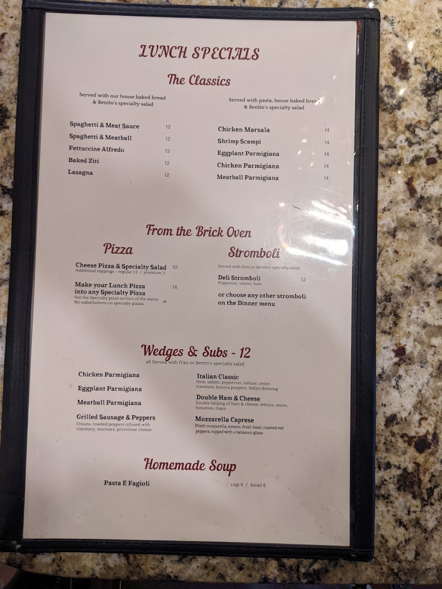 Benito's Brick Oven - Pizza & Pasta Menu (Update 2025)